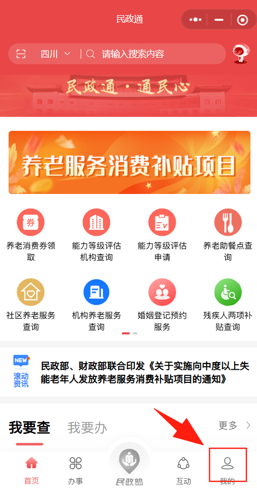 2026年1月1日起 会理市向经评估认定的 中度以上失能老年人 发放养老服务消费补贴券 享受居家、社区、机构养老服务 如何领?怎么用? 操作全流程指南已备好! 手把手教您办理 请您收藏转发! 微信搜索【民政通】小程序或下载【民政通】APP。 点击右下角进入“我的”相关界面,选择“注册”选项,按照提示填写完整的注册信息。 填写完毕后,需勾选“我已阅读并同意《用户协议》”选项框,点击“立即注册”按钮完成账号创建。 账号注册成功后,进入用户登录页面,可使用一键登录功能便捷登录账号。