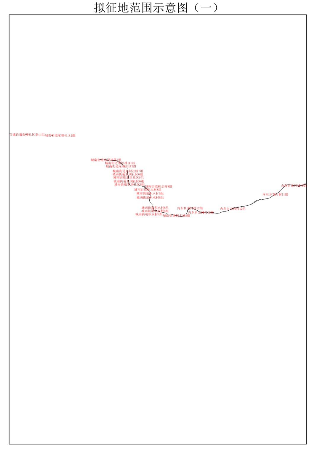 本次拟征收土地位于会理市城南街道东坝社区1、4、5、6、7组,城南街道积水村8组;古城街道南郊社区东山组,内东乡龙河村8、9、10、11、12组;内东乡团山村3、4、5、6、7组;太平镇大村村1、4、5组,尖山村4、7组,太平社区1、2组,樟木村1、2、3、5、6组。范围见《拟征收土地范围示意图》(附后),拟征收土地面积以土地现状调查面积为准。