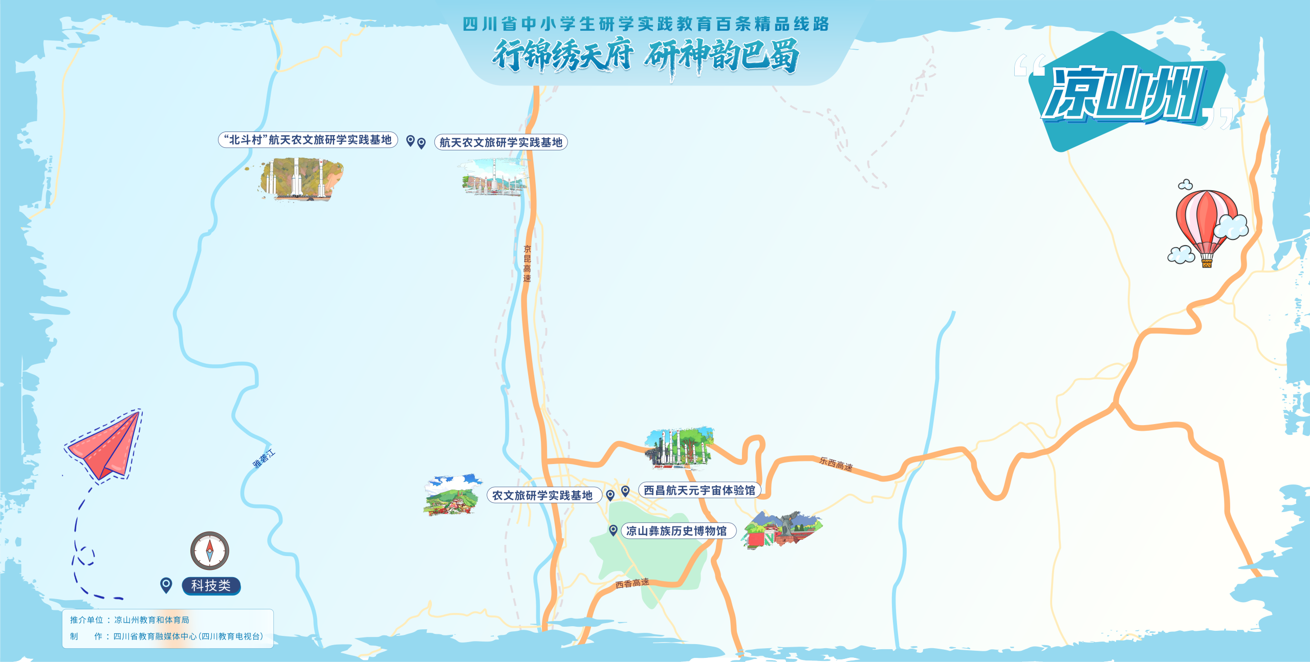 线路节点单位:冕宁彝海结盟红色文化科普教育基地——凉山州航天科普教育基地——会理会议会址——中国三线建设博物馆